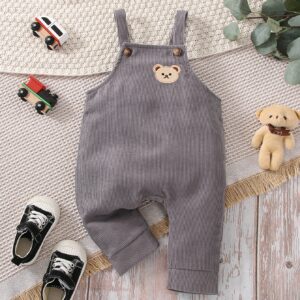 جمبسوت بحمالات مطرز بالدب للاطفال – Size: 3-6M
