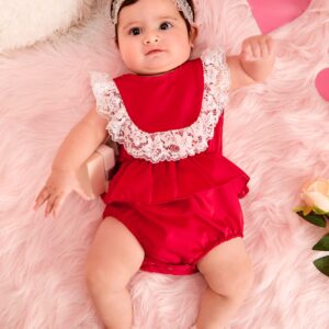 رومبيرات للرضع الدانتيل منتفض درز بقوس أمامي الصاف – Size: 12-18M