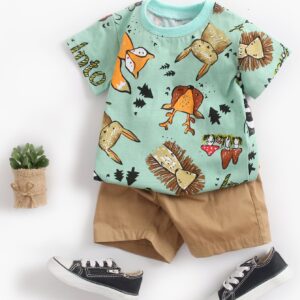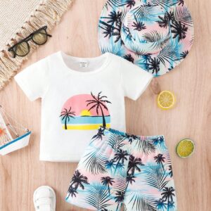 تي شيرت وشورت بطباعة استوائية للاطفال – Size: 6-9M