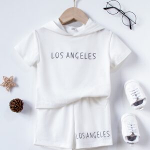 تي شيرت وشورت بطباعة أحرف قبعة للاطفال – Size: 12-18M