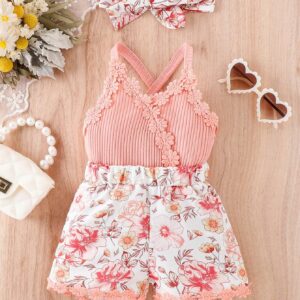 تيشيرت بأطراف مكشكشة وطباعة زهور وشورت بحزام أطفال – Size: 68