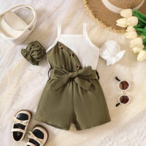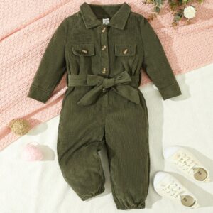 جمبسوت قميص بتفاصيل رفرف حزام للبنات الاطفال – Size: 12-18M