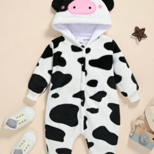 جمبسوت نمط بقرة تصميم أذن ثلاثي الأبعاد قبعة فانيلا للاولاد الاطفال – Size: 6-9M