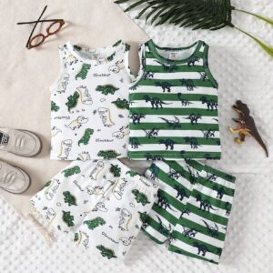 طقم قطع متعددة بطبعة الديناصور الكرتونية للأولاد الرضع – Size: 18-24M