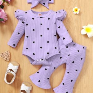 للاطفال بطباعة قلب مقلم بكشكش بوديسوت و بنطلون بساق واسع مع عقال الرأس – Size: 80