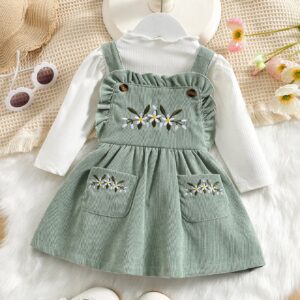 للاطفال مقلم نمط نبات الخس تي شيرت و مطرز بأزهار فستان افارول – Size: 9-12M