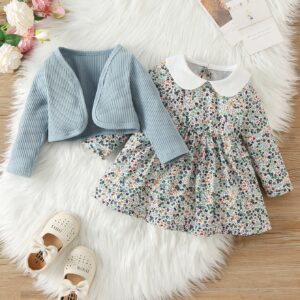 للاطفال زهر ديزي ياقة متباينة فستان سموك و جاكيت – Size: 12-18M