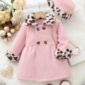 للاطفال معطف نمط الفهد ياقة بورغ و قبعة – Size: 9-12M