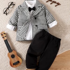 للاطفال طباعة مربع النقش عقدة الفراشة أمامية بليزر وبنطلون و قميص – Size: 2-3Y