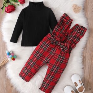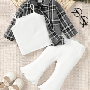 للاطفال بنطلون بساق واسع مربعات ملونة قميص و مقلم نمط نبات الخس و لباس علوي كامي موحدة اللون – Size: 2-3Y
