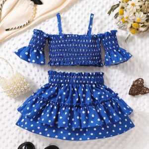 للاطفال لباس علوي بنقاط البولكا كتف مكشوف اكمام منتفضة و تنورة حافة مكشكشة – Size: 6-9M