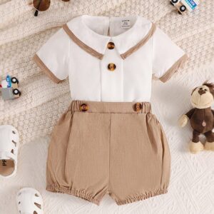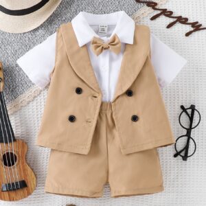 للاطفال بليزر صدرية صف ازرار مزدوجة و بنطلون قصير و قميص عقدة الفراشة أمامية – Size: 2-3Y