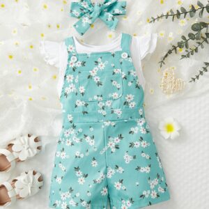 للاطفال مقلم بكشكش تي شيرت مع طباعة الأزهار خصر مكشكش ورقي قوس بنطلون قصير – Size: 68