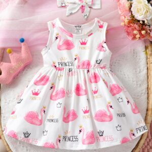 للاطفال فستان بجعة و بطباعة أحرف و اكسسوارت طوق الشعر – Size: 2-3Y