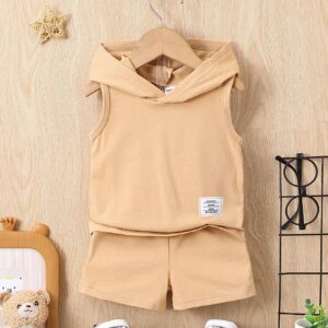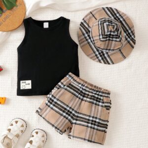 للاولاد الاطفال تفاصيل مرقع قبعة لباس علوي تانك & بنطلون قصير – Size: 6-9M