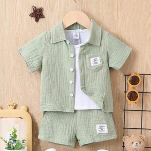 للاولاد الاطفال تفاصيل مرقع بعبارة جيب امامي قميص & بنطلون قصير بدون تي شيرت – Size: 2-3Y