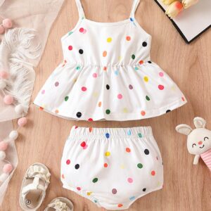 للاطفال بطباعة نقاط البولكا صدرية كامي مطوي الثنايا و بنطلون قصير – Size: 6-9M