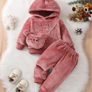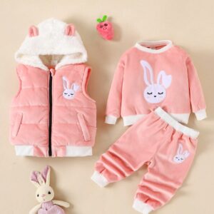 للبنات الاطفال صور رسوم كارتون بطباعة تيدي قبعة جاكيت مع بنطلون رياضي & جاكيت صدري – Size: 12-18M