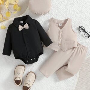 للاولاد الاطفال عقدة الفراشة أمامية بوديسوت مع بنطلون & & معطف & قبعة – Size: 9-12M