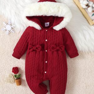 ليّ ولد فتاتي بيجامة ذات غطاء رأس أحمر مع ربطة عنق وأمامية، الشتاء – Size: 12-18M