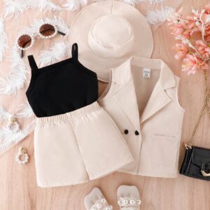 مجموعة بناتية للرضع بحمالات الكتف وسترة بلا أكمام، وشورت – Size: 2-3Y