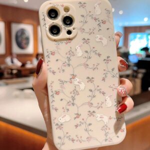 حافظة هاتف مضادة للسقوط بنمط أرنب وزهرة متوافقة مع هواتف iPhone 15/15Pro/15Plus/15Promax – Size: iPhone 13Pro Max