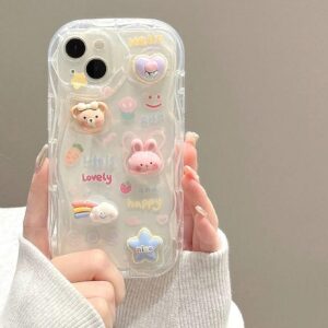 حافظة هاتف مزخرفة بتصميم أرنب ودب كرتوني ثلاثية الأبعاد متوافقة مع هواتف iPhone 15/15Pro/15Plus/15Promax – Size: iPhone 14 Pro Max
