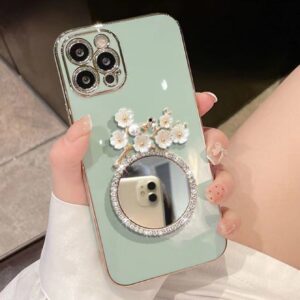 حافظة هاتف مطلية بالزهور ومزينة بالمرآة متوافقة مع آيفون 15 برو ماكس/11/14 برو ماكس/13 برو ماكس/13 – Size: iPhone 15 Pro