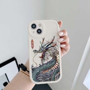 علبة هاتف بيضاء برسمة تصميم الدراجون بتفاف عدسة بصرية تصميم كرتوني لعام 2024 مع حزام أسود للهاتف – Size: 11