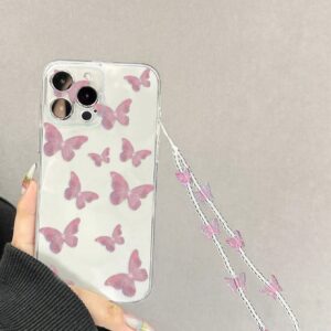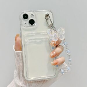 شفاف فتحة بطاقة كفر موبايل مع زخرفة فراشة حزام عنق – Size: iPhone 14 Pro Max