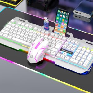 ضوء LED سلكي حامل الهاتف تصميم لوحة المفاتيح والماوس كومبو – Size: one-size
