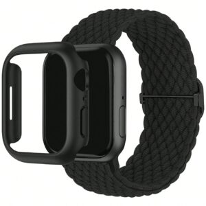سوار ساعة محبوك من النايلون وحافظة مفرغة من البلاستيك المقاومة تتوافق مع ساعة ابل – Size: 45