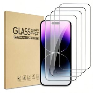 غشاء واقية تغطية كاملة عالية الدقة شفاف صدمات , مقاوم للخدش غشاء صلب متوافق مع تفاحة ايفون مسلسل 4 قطع – Size: For iPhone 15 plus