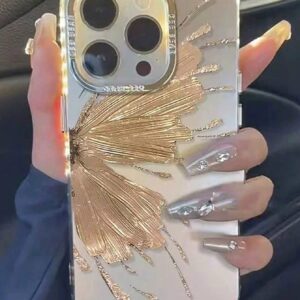 غطاء الهاتف الكهربائي المطلي بالفضة/الذهبي الفراشة لآيفون 12/13/14/15 – Size: Iphone 13