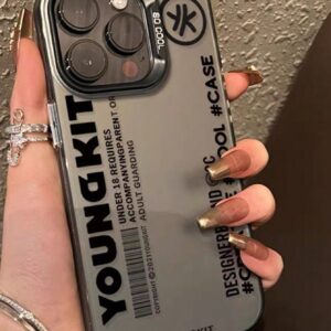 غلاف هاتف أسود أنيق مع دمج أسماء المواقع والأرقام لآيفون – Size: iPhone 14 Pro Max