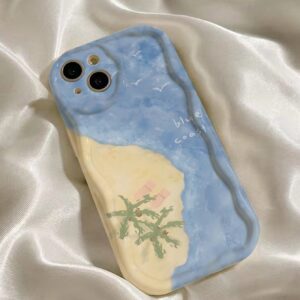 قطعة واحدة أبيض ثلاثي الأبعاد متموج منقوشة شاطئ بحر عطلة كفر موبايل متوافق مع فون – Size: iPhone 13Pro Max