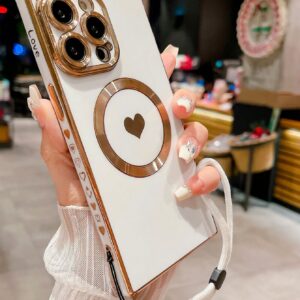 غطاء هاتف مغناطيسي جديد مطلي بشكل قلب جذاب بحافة مستقيمة + حبل تعليق مضبوط لمنع الفقدان وحماية من السقوط – Size: 11