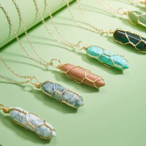 الحجر جوهر متدلي قلادة عشوائية القياس مع لون – Size: one-size