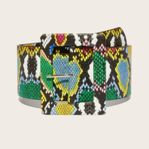 بطباعة جلد الثعبان مشبك مربع حزام مع أداة ثقب – Size: one-size