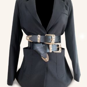 1 الأوروبية والأمريكية العلامة التجارية الشهيرة ثلاثة حلقة دائرة فضفاضة ضيق حزام فستان شخصية قميص الديكور حزام المرأة – Size: 70