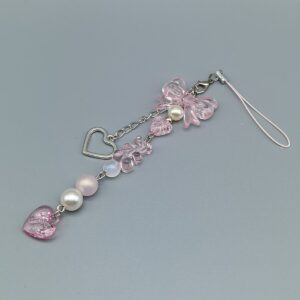 حزام عنق للنساء حلو & رائع وردي شكل قلب شفاف دب & لؤلؤة تقليد تليفون محمول , أسلوب CCD كاميرا حزام قطعة واحدة Y2K – Size: one-size