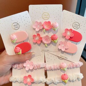 12قطع/طقم وردي قلب & مزخرف بزهر دبوس الشعر & مرون ربطات الشعر – Size: one-size
