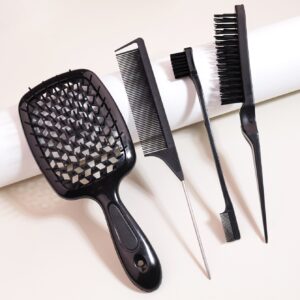 4 قطع فرشاة شعر مشط , مناسب الى مبلل أو شعر جاف , بدون متشابكة شعر , فرشاة طويل و تجعيد الشعر أسود جمعة – Size: one-size