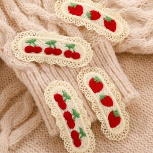 4 مشابك شعر و إكسسوارات بطبعة الفراولة والكرز الجميلة، مثاليّة لحفلات المدرسة، السفر، أو التصوير – Size: one-size