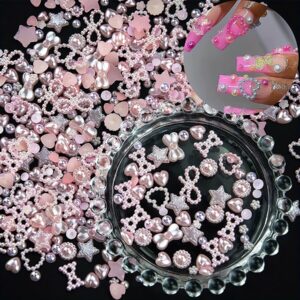 الجمعة السوداء 150-200 قطعة Y2K ثلاثية الأبعاد وردي أبيض وأحمر لؤلؤ مسمار سحر متعدد الأشكال زهرة نجمة فيونكة قلب لؤلؤ مسطح أكريليك لطيف لؤلؤ ثلاثي الأبعاد سحر فن الأظافر لفن الأظافر DIY – Size:
