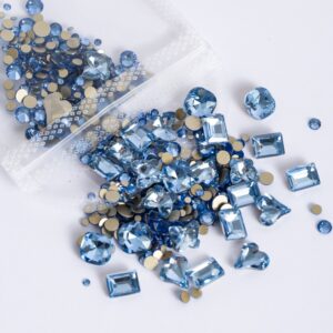 الجمعة السوداء باللون الأزرق الفاتح – 300 قطعة من أحجار الراين المستديرة (ظهر مسطح/قاع مدبب) و20 قطعة من أحجار الراين الكبيرة للأظافر بأشكال متنوعة – Size: