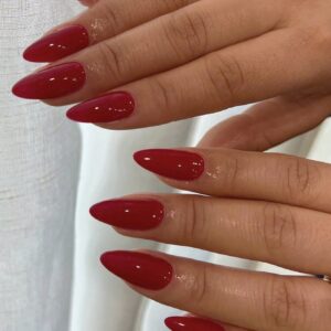ارتقي بأسلوبك مع مجموعة أظافر وهمية حمراء طويلة على شكل لوز مكونة من 24 قطعة، تصميم مناسب تمامًا ومتوسط الطول، للنساء والفتيات لملابس العمل اليومية – Size: