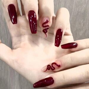 اجعلي جمالك أكثر حلاوة بأظافر مزيفة بتصميم باليه يانصيب كي Y2k بنمط ثعبان أحمر وخدود متدرجة بطقم 24 قطعة يناسب فصل الشتاء – Size: