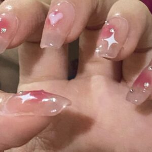 براقة مع 24 قطعة قصير مربع احمر الخدود نجمة نمط القلب أظافر اصطناعية ورقة الشريط مع قطعة ملف الأظافر للنساء و بنات – Size: