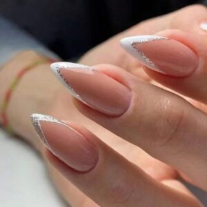 براقة مع 24قطع/طقم شكل لوز أبيض فرنسي لامع أظافر اصطناعية عدة مع قطعة واحدة مبرد أظافر & قطعة واحدة غراء هلام الأظافر – Size: